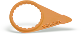 Place one Wheel-Check® over each nut with the raised collar towards the wheel. Wheel-Check® name, number and size should be facing out. Hold the arrow of the indicator pointing in your preferred pattern. Push the Wheel-Checks on with a socket wrench or a PVC pipe